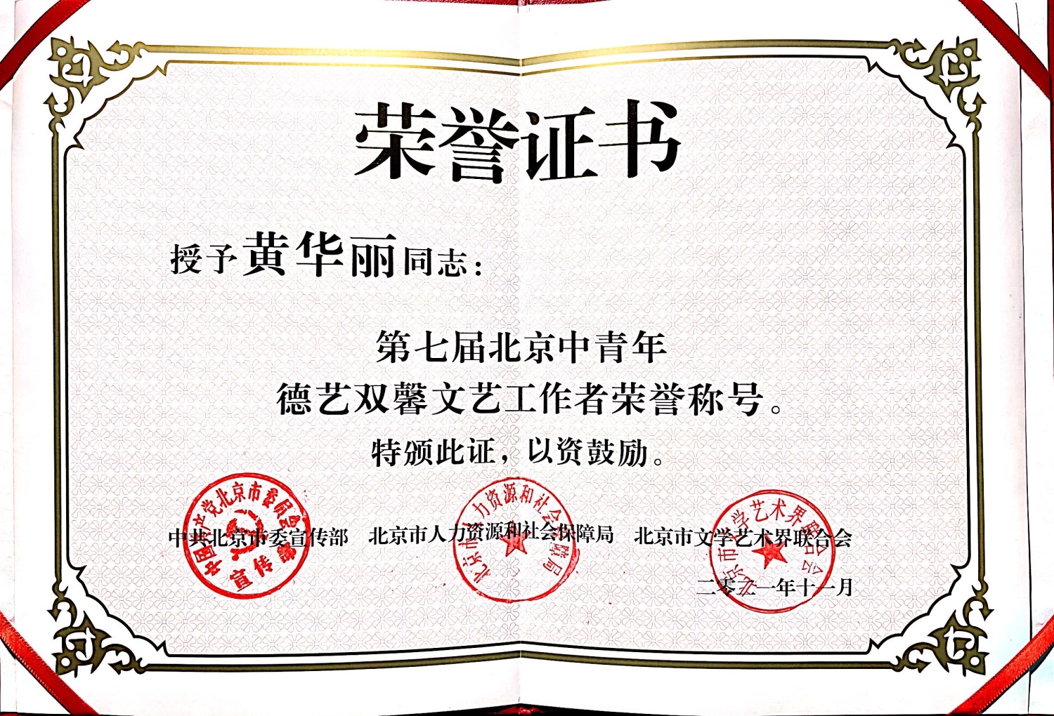 昨天,第七届“北京中青年德艺双馨文艺工作者”评选举办表彰活动。best365黄华丽教授等共20位艺术家获得德艺双馨文艺工作者称号,堪为“北京榜样”。