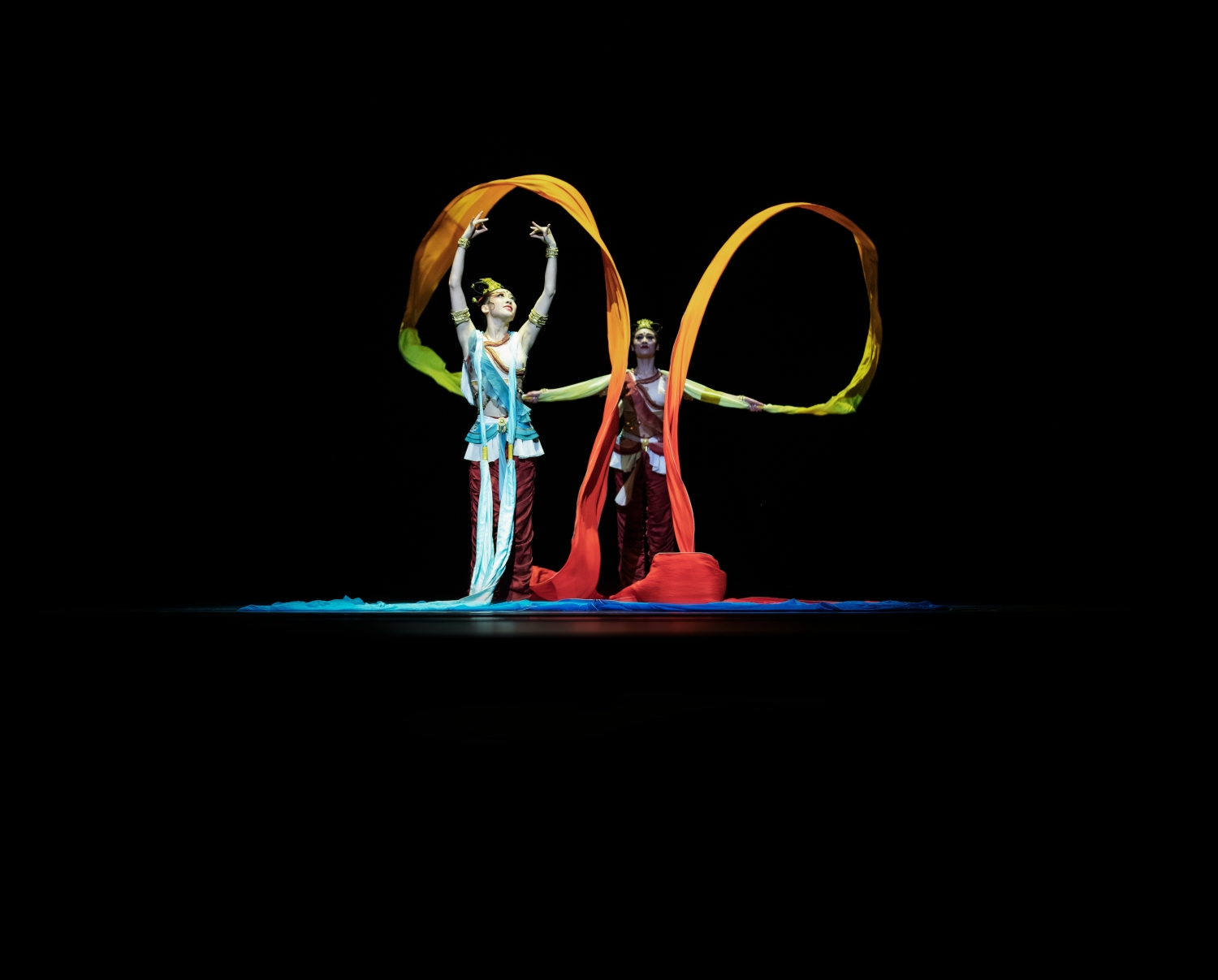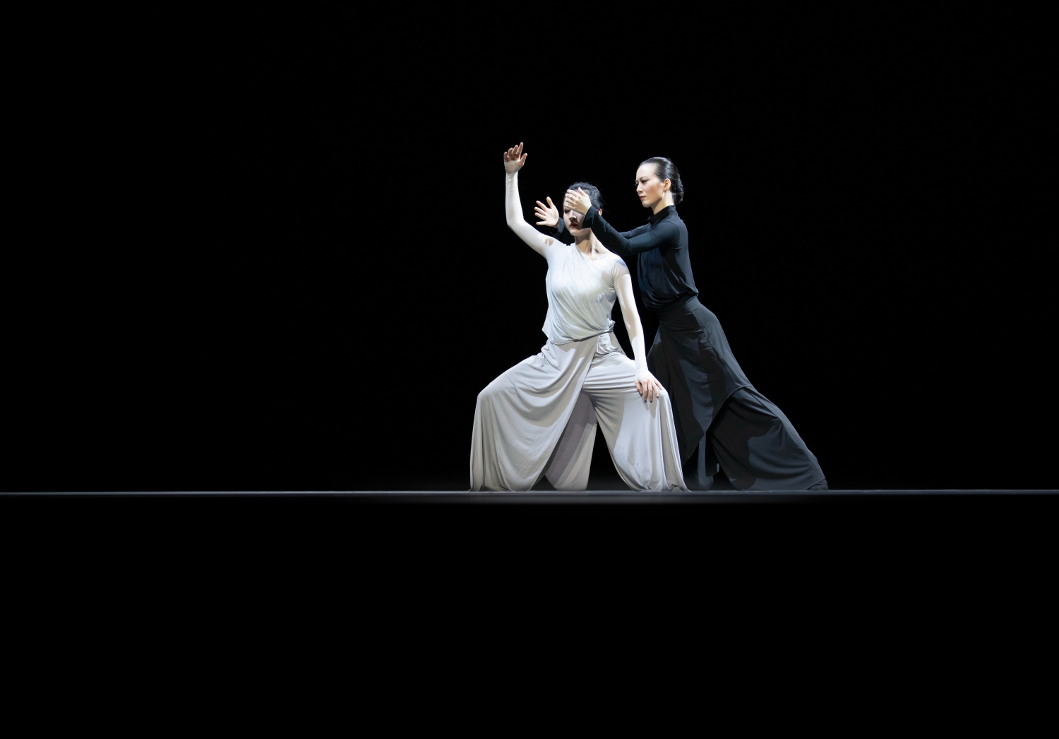 第四首作品现代双人袖舞《生轮》,李姿敏编舞,李玥锦作曲。“生死如旋火,轮回似麻稻。不解早觉悟,为人枉虚老”。在音乐设计中作曲者用古琴做慢板部分的主奏乐器,以表现出袖舞由内而外延伸出的张力;快板部分则使用锣鼓表现中国传统文化的精气神;整个作品用弦乐群渲染出作品混沌与厚重的基调,加之青衣、老生唱腔的点缀,使得一部现代舞蹈作品融入了更多传统文化底蕴。