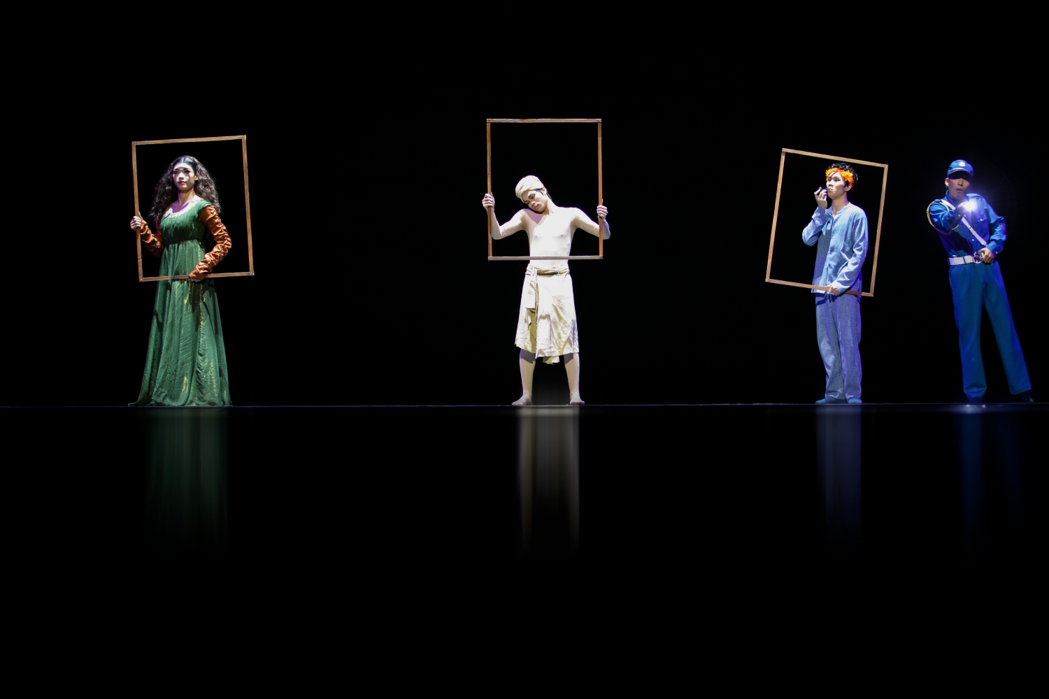 第六首作品现代舞《换位》,袁浩编舞,王啸尘作曲。“一切都在他们的深算中”。这部作品用三位舞者扮演了三幅博物馆中的名画,一位舞者则扮演了博物馆中的管理人员。四位舞者借助画框将舞蹈所含的深意展现出来:到底是我们在看画还是画在看我们?在音乐的设计中作曲者运用“摩斯电码”巧妙设计出了独特的八声音阶,在混合室内乐的写作中使用了对位的写作手法,加之三连音的不断裂变,创作出一首精致且充满新意的现代舞蹈配乐。