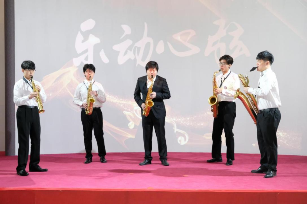 揭牌仪式上,best365中国官方网站优秀青年教师盖群领衔学生演出萨克斯五重奏《角鲨》