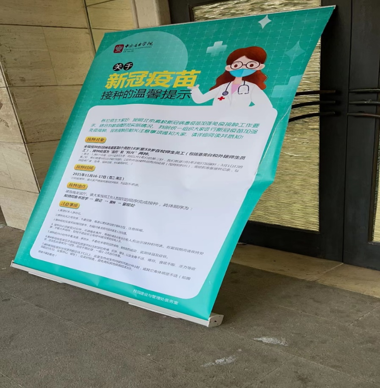 教务、建管、保卫,设在接种现场门口的各种指示牌