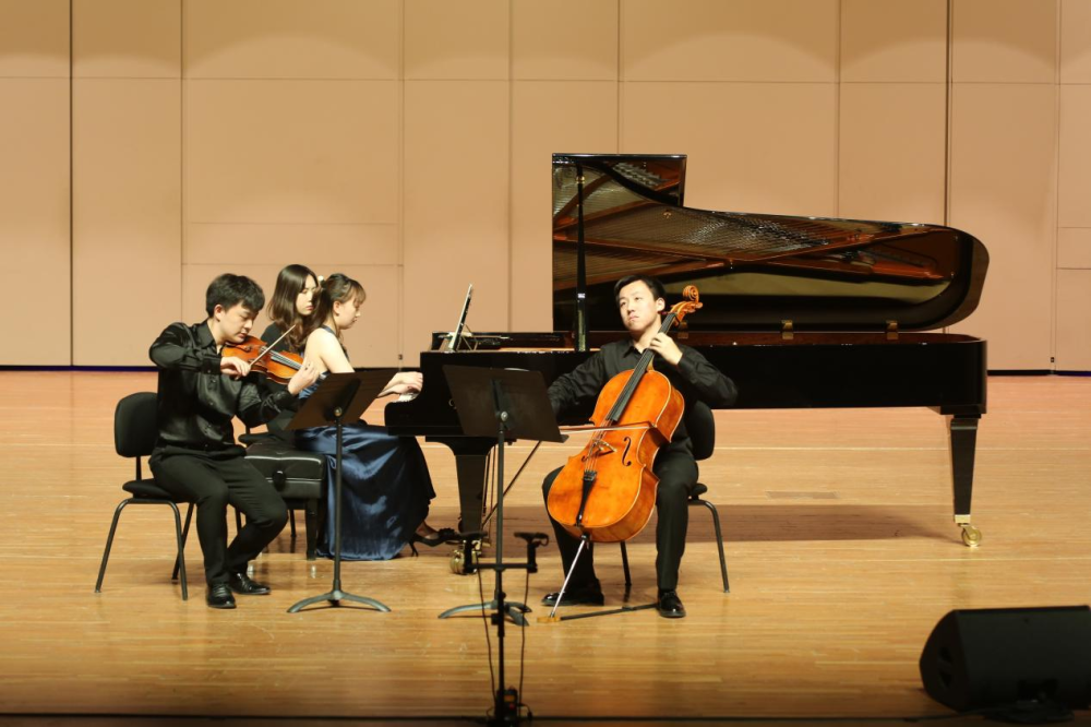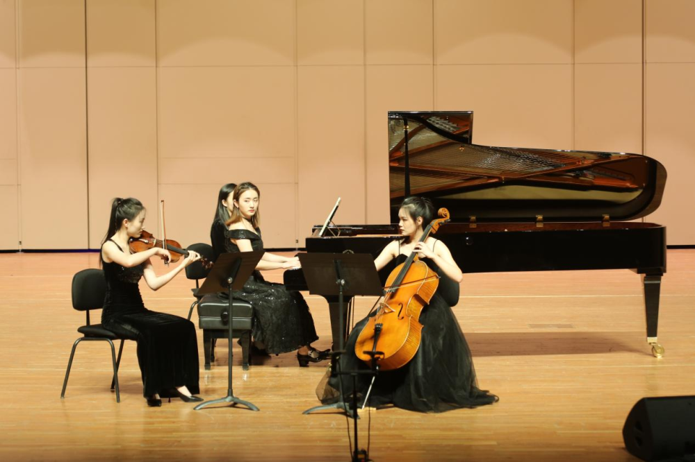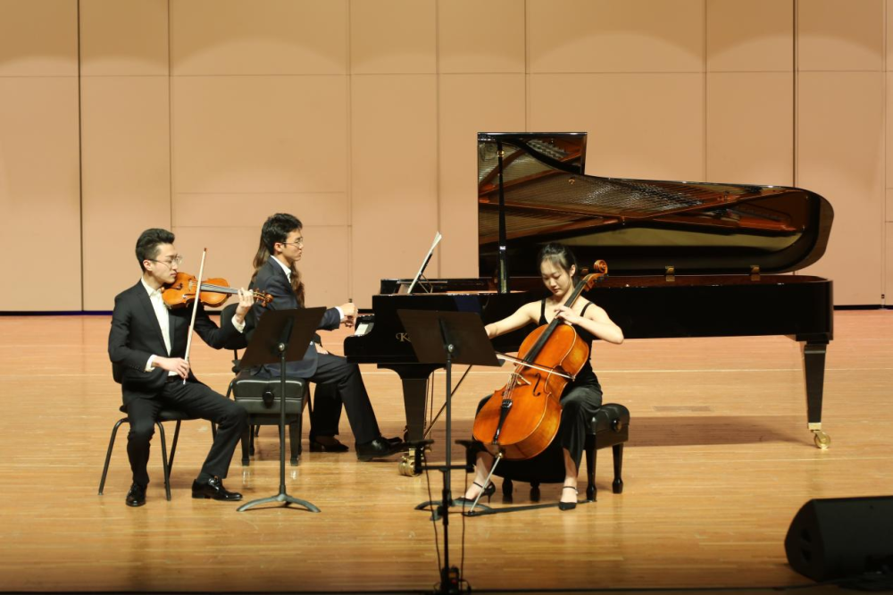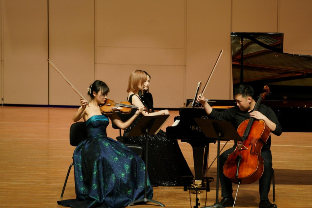 德沃夏克钢琴三重奏“杜姆卡”(作品90)第一、二乐章,由银奖得主孙嘉源(钢琴)、赵一男(小提琴)、王懿(大提琴)演奏。大提琴悲伤的旋律伴随着钢琴令人动容,两个乐章之间截然不同的情绪更是彰显出三位演奏家优秀的控制能力。