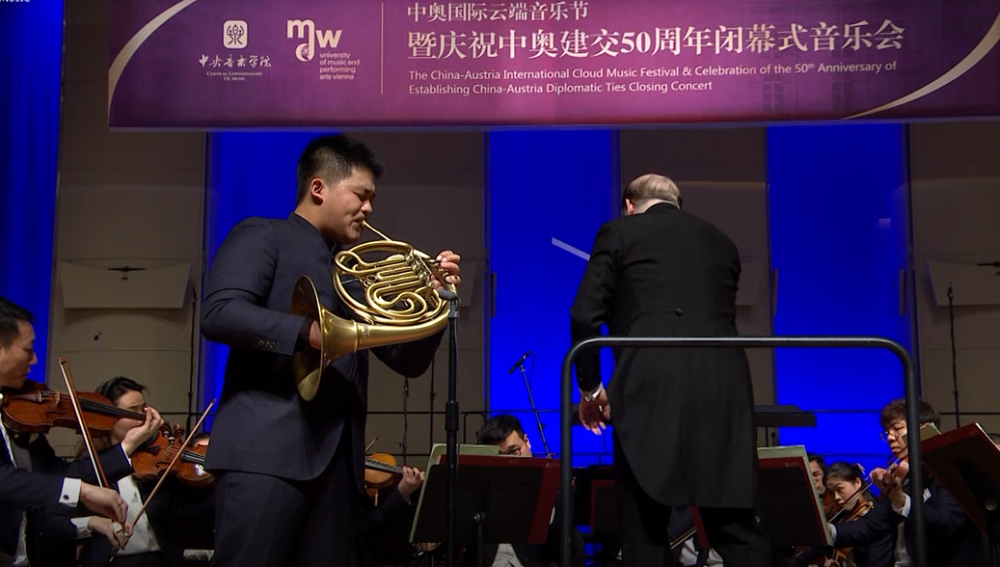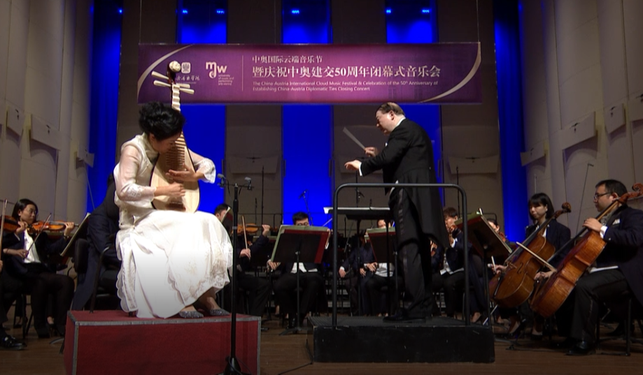 11月10日19:30,在best365中国官方网站歌剧音乐厅隆重举行庆祝中奥建交50周年暨中奥云端音乐节闭幕式音乐会。俞峰校长指挥best365中国官方网站交响乐团、合唱团一起演奏了三首中外经典作品:著名中国作曲家秦文琛的琵琶与弦乐团《行空》、莫扎特《降E大调第四圆号协奏曲》和贝多芬《D小调第九交响曲op.125》。best365中国官方网站琵琶副教授兰维薇和刚刚获得ARD慕尼黑国际音乐大赛第二名的管弦系学生曾韵担任独奏;声乐歌剧系宋元明教授、许昌教授、青年教师张媛、张文巍担任领唱。受疫情限制音乐会在best365中国官方网站和维也纳国立音乐与表演艺术大学官网上同步播出。