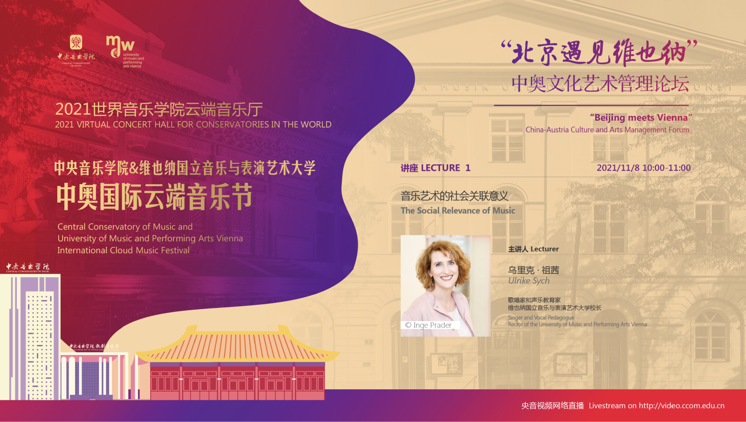 2021年,中国和奥地利迎来了建交50周年的历史性时刻,在这个特殊的年份中,两校更是积极响应,共同举行此次中奥“国际云端音乐节”。此次音乐节活动得到了中国驻奥地利大使馆、奥地利驻中国大使馆,维也纳市政府、维也纳音乐厅,中国艺术管理协会,中国国家大剧院,中国交响乐团、(欧洲)国际文化交流合作协会及欧中文化、教育与科学协会等多个中奥机构的大力支持。维也纳国立音乐与表演艺术大学校长乌里克·祖茜, 奥地利驻华大使利肯, 中国驻奥地利大使李晓驷,维也纳州议会第一议长恩斯特·沃勒纷纷发来视频致辞!