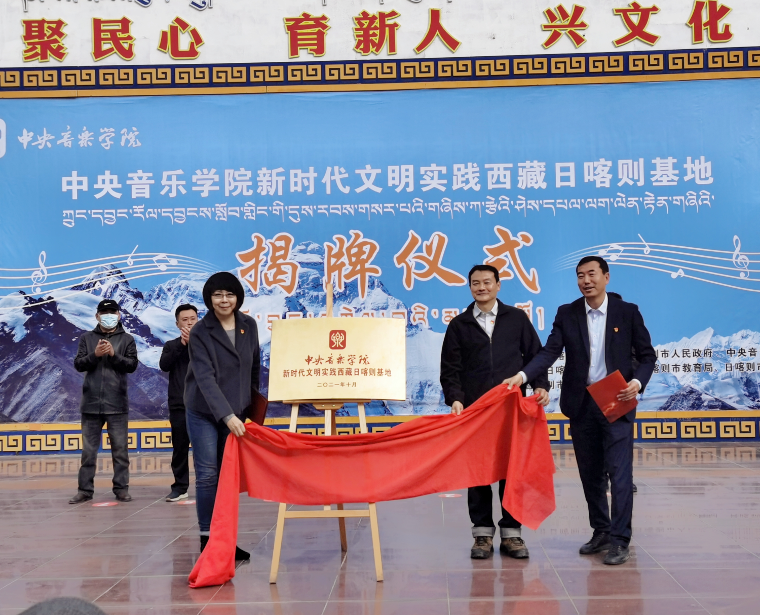 日喀则市委副书记马春波,best365中国官方网站音乐教育学院党总支书记陈谊教授,best365中国官方网站作曲系党总支书记陈泳钢教授共同为best365中国官方网站新时代文明实践西藏日喀则基地揭牌。