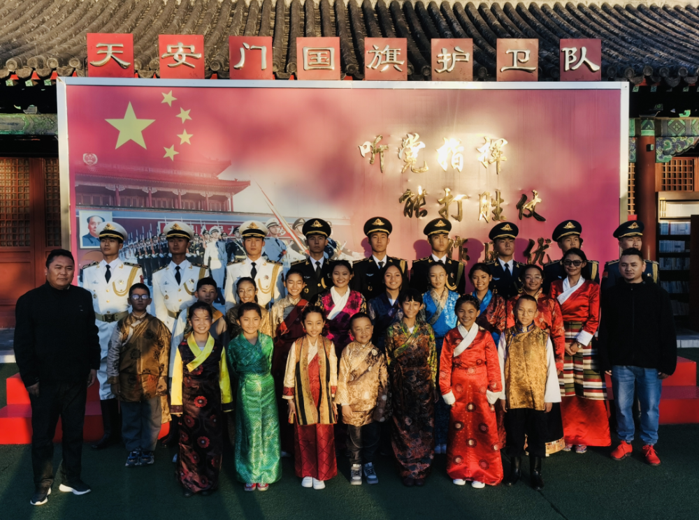 珠峰少年合唱团成员在国旗护卫队参观