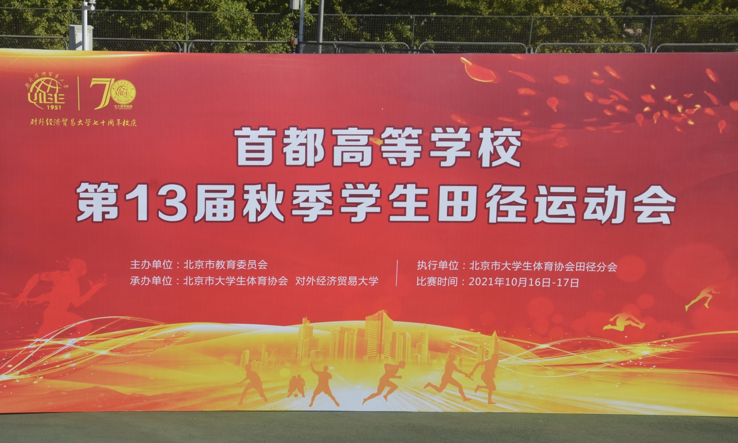 2021年10月7、16、17日,由北京市教育委员会、北京市大学生体育协会主办的首都高等学校第13届秋季学生田径运动会在对外经济贸易大学举行。