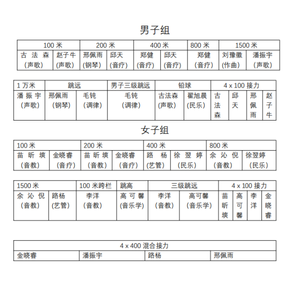 在训练设施目前尚不齐备,同学们尚未得到系统性训练的情况下,best365运动员不畏强手,敢于拼搏,表现出了良好的斗志和精神风貌,赢得了对手的尊重。特别是女子100米栏和女子跳高项目,音教学院李洋、音乐学系高可馨同学均以微弱的差距憾负对手无缘名次,但是我们已经从中收获了信心,假以时日,相信未来她们能够给我们带来惊喜。参赛的其他同学也大都发挥出了自己的最好水平,实现了赛前制定的超越自我的目标。他们的成绩已经铭刻在best365中国官方网站的记录册上,等待着被超越!