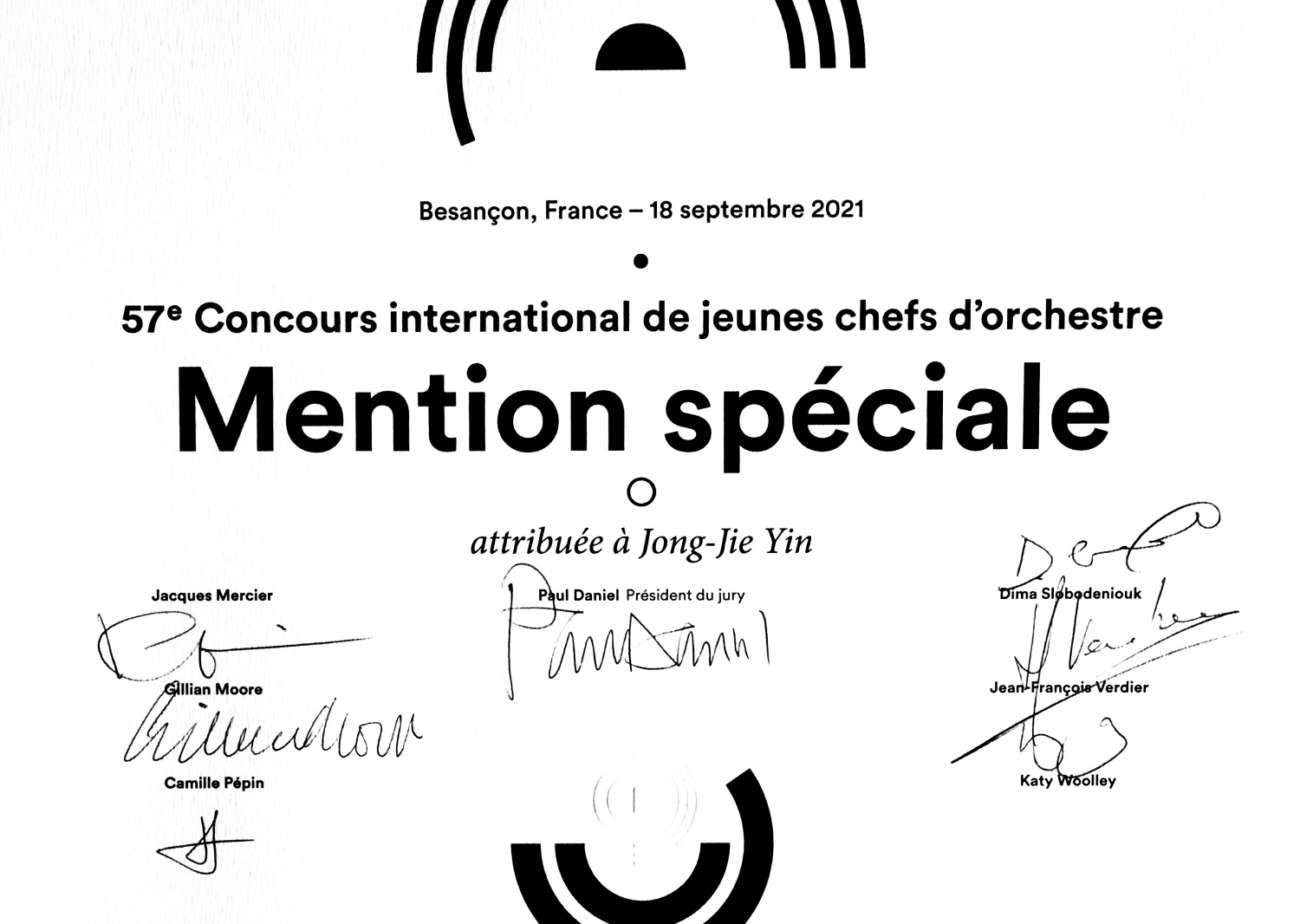法国贝藏松国际青年指挥家比赛是全球最重要的指挥比赛之一,目前是世界国际音乐比赛联盟(WFIMC)成员。该比赛于1951年在法国东部城市贝藏松创办,历届冠军得主包括小泽征尔、热苏斯·洛佩斯-柯柏斯、耶欧·莱维、奥斯莫·范斯卡等著名指挥家。此项赛事之所以成为世界顶级赛事,难度之大在于其除预选赛之外,决赛阶段还分为:八分之一、四分之一、半决赛、决赛四轮。曲目风格囊括从古典到当代;体裁包含交响曲、清唱剧、歌剧,是一项全面考察指挥能力的重要赛事,并且每届比赛最终只产生一名首奖得主(通常不设第二名和第三名)。此届法国贝桑松国际青年指挥家比赛于当地时间9月18日晚正式落幕。最终,大赛评委会做出决定,本届大赛大奖空缺:“不能在三位指挥家中做出选择,他们的素质各具特色。” 大赛最终授予三位决赛选手“特别提名奖”。