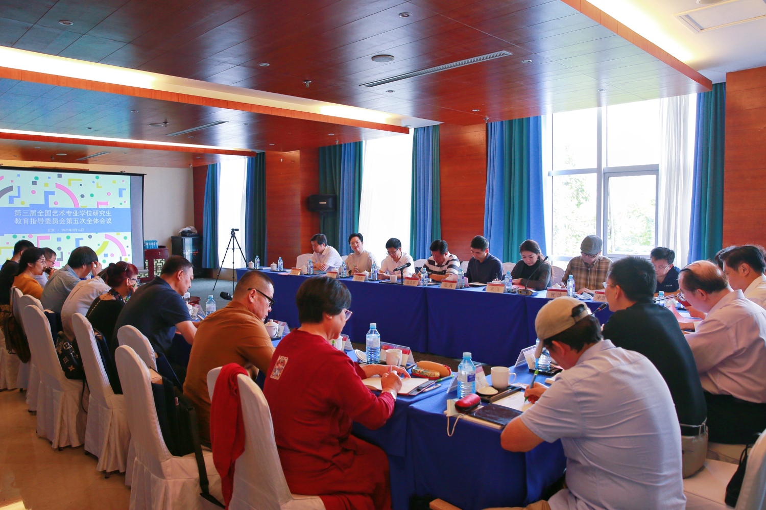 9月14日,第三届全国艺术专业学位研究生教育指导委员会第五次全体会议由best365中国官方网站承办在京举行。教指委主任委员中国文联副主席董伟,副主任委员best365中国官方网站院长俞峰、教育部体卫艺司副司长万丽君、北京师范大学艺术传媒学院教授周星,音乐舞蹈分委员会召集人北京舞蹈学院王伟教授,戏剧戏曲广播影视分委会召集人张会军教授,美术设计分委员会召集人清华大学美术学院何洁教授等22位教指委委员以及丁凡秘书长、宋慧文副秘书长、秘书处刘德坤主任参加会议。会议特别邀请国务院学位办培养处郝彤亮处长到会指导。
