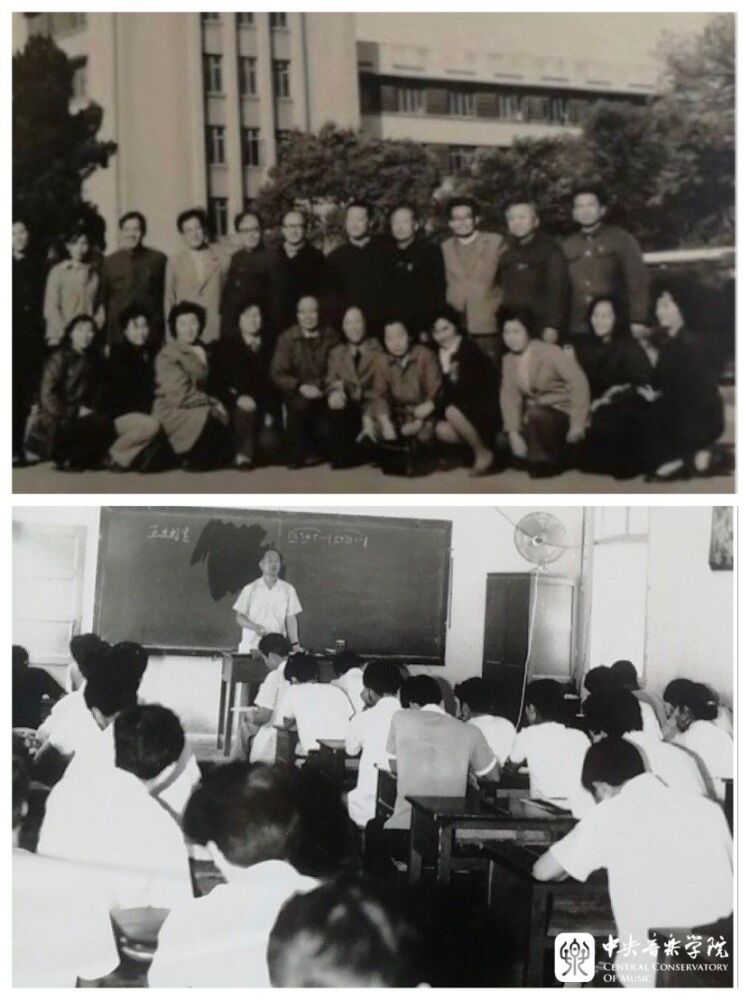 上:1983年参加全国音乐教育会议后,与“民歌组”全体同志合影,后排站立右4为何振京