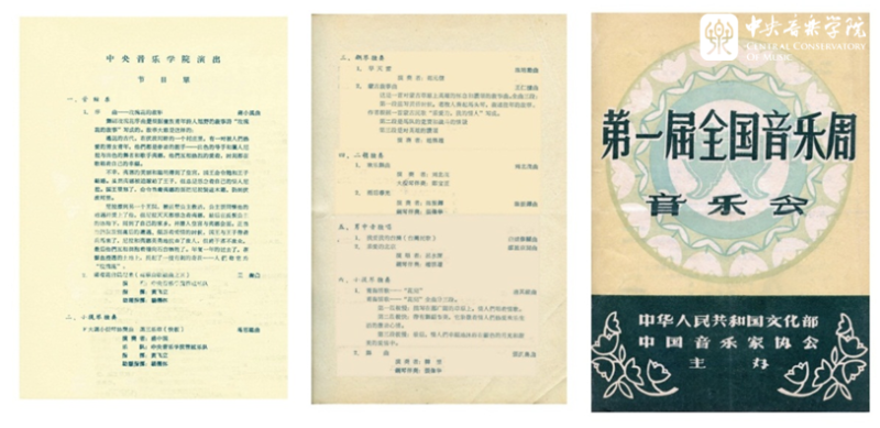 1956年8月,在北京举办的第一届全国音乐周上,学校举办专场演出,表演了管弦乐、独奏(小提琴、钢琴、二胡、双簧管)、独唱(男、女声)、小合唱、合唱、民族管弦乐、舞剧等共23个节目。