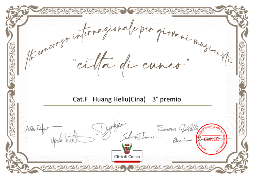 意大利库内奥省政府主办,为全球青年音乐家举办“第一届意大利Cuneo国际青年音乐家比赛”。