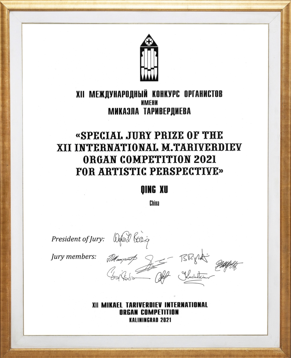 2021年获得塔里维尔季耶夫国际管风琴比赛“艺术成就奖”第一名。