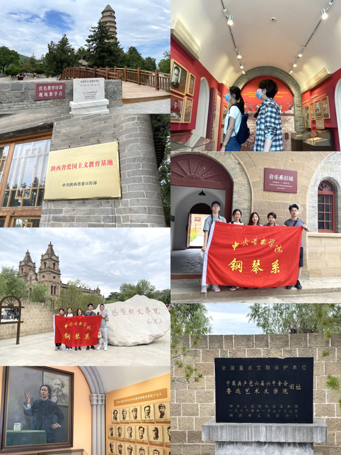 在深入基层送音乐的同时,学生党支部也充分利用志丹县丰富的红色资源扎实深入地推进党史学习教育活动。同学们走进志丹县西北革命根据地旧址、延安鲁迅艺术学院旧址、保安革命旧址、刘志丹烈士陵园、中国人民红军抗日大学、中共第六届六中全会旧址等。在参观学习中,大家缅怀革命先烈,汲取奋斗力量,深刻领悟到革命老区的红色精神,充分感受老区的革命情怀,增强了强烈的责任感与使命感。