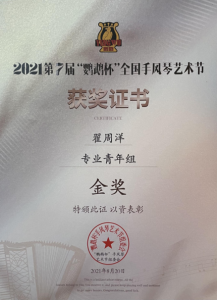 在刚刚过去的暑假,附中及大学的手风琴专业学生积极参与了四项国内外比赛并取得了优异成绩。