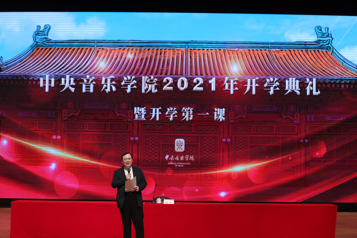 俞峰校长以“点亮音乐人生”为题,结合党史、校史和音乐史,从音乐的价值、音乐人的时代使命、“央音人”的时代传承几点出发,为全体新生讲授了开学第一堂思想政治课。
