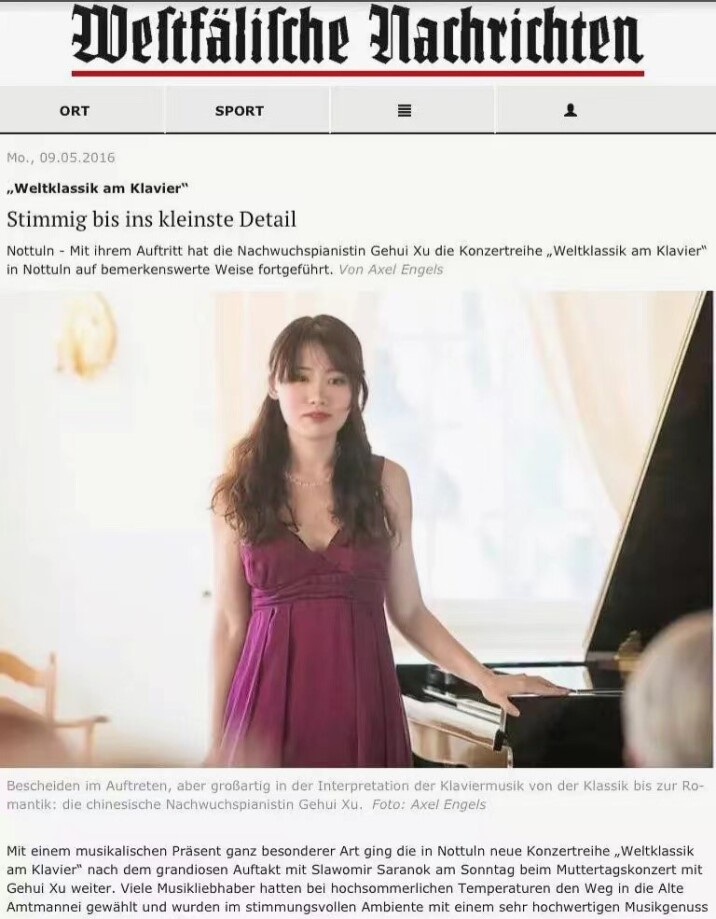 2016年5月,许歌卉在德国Nottuln举行独奏音乐会。