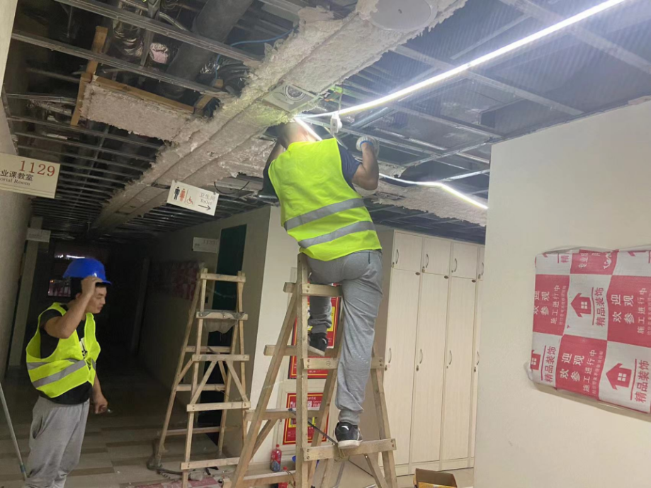 其中,学校组织人员力量对教学楼电气系统进行全面的安全隐患排查,委托专业的设计、施工单位,按照最新和最高级别的规范要求对教学楼全楼的电气系统进行整体升级改造,并完善必要的消防电气系统。主要施工内容包括更换强电竖井内所有主供电母线、电缆、配电柜及消防电缆,更换分层电缆及电线,更换应急照明疏散系统和防火门,增加防火门监控系统,增加电气火灾报警系统温感、热解离子感应模块等,工程量较大。