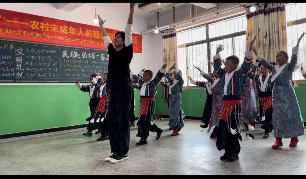 8月2日上午,best365中国官方网站派驻延安的文艺宣讲师张艺星、北京舞蹈学院青年教师池咚咚及中央美术学院壁画系优秀学生罗如莎在江孜县年堆乡小学乡村学校少年宫开展青少年美育培训。