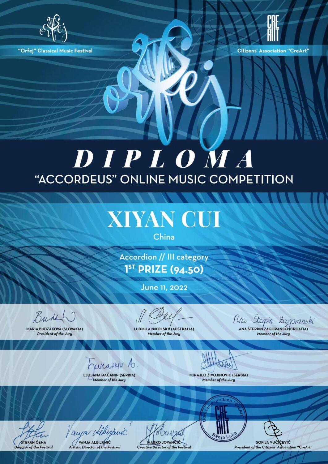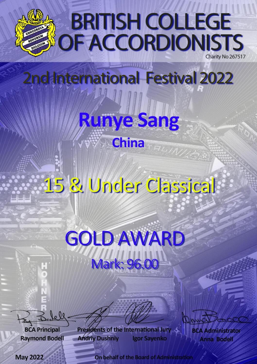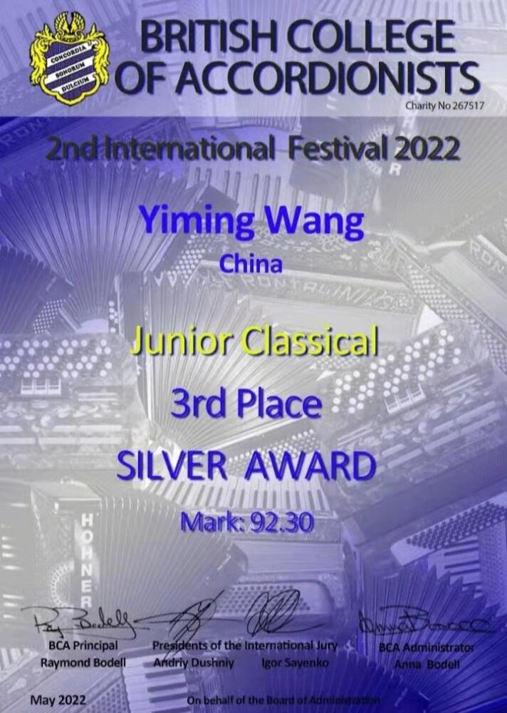 在此,向各位获奖学生及手风琴教学团队曹晓青教授、许笑男老师、许可卿老师和田佳男老师表示祝贺!