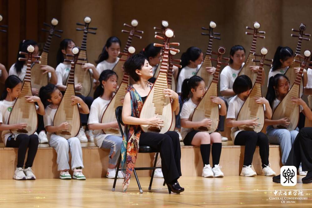 “快乐夏令营,最重要的是快乐二字”。章红艳教授如是说,并邀请“我的琵琶行——快乐琵琶夏令营”的学员们登上舞台,合奏《故乡的太阳》与《彝族舞曲》。作为音乐会的第一个节目,孩子们稳健的台风与出色的演奏展示出他们数日内的飞速成长与进步,也同样向观众传递了老师的教育理念。在章红艳教授看来,音乐的演奏并不只是对技巧与艺术的单纯追求,更应源自内心的快乐,让琴声由心而发。人们常说“寓教于乐”,亦或许在音乐中追寻快乐,更是我们学习、热爱音乐的原因之一。音乐之于美育的作用,艺术家作为音乐普及者与传播者的品格与态度,正体现在每一次的躬行实践中。