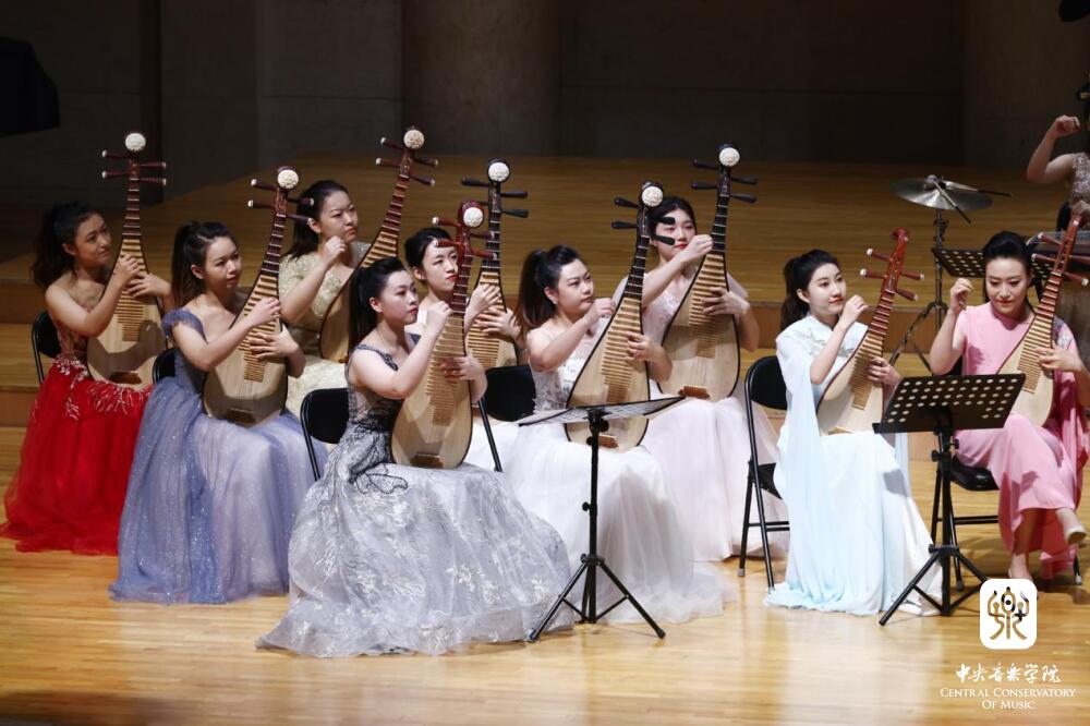 民乐系优秀师生组成的best365中国官方网站弹拨乐团则倾情演奏为本次音乐会全新编创、首演的力作。在极富现代感的《品》精彩亮相后,由作曲家鲍元恺为弹拨乐团特别移植改编、齐瑶编配的四部来自《炎黄风情》组曲的作品,以弹拨乐的细腻抒情与大气宏阔,在变换中唱响本真纯粹的民歌风韵。河北民歌《对花》《小白菜》,山西民歌《看秧歌》与云南民歌《放马山歌》一气呵成,歌唱性的旋律线条描摹民歌的语调,既强化了质朴纯粹的情感色彩,又通过传统音乐放大了作曲家以祖国各地音乐风采为灵感而创作的远大情怀。