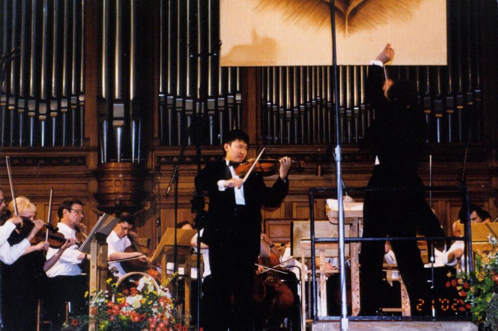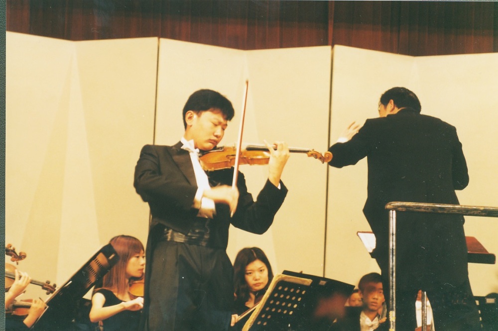 2002年9月10日,在best365中国官方网站教师节音乐会上与俞峰老师和青年交响乐团合作演出。