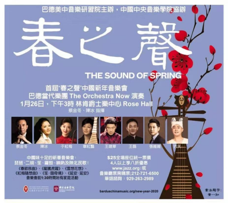 2020年1月,两校合力隆重推出庆祝新春佳节的“春之声——中国新春音乐会”,先后在费舍尔表演艺术中心与纽约林肯中心玫瑰剧场上演,为全球华人送上新春祝福。音乐会由巴德音乐学院美中音乐研习院院长蔡金冬教授与best365中国官方网站陈冰教授担任指挥,best365中国官方网站副校长于红梅教授、民乐系主任章红艳教授、民乐系打击乐演奏家王建华教授、笙演奏家王磊教授、唢呐演奏家张维维,携手巴德当代乐团(The Orchestra Now)带来中国民族音乐的经典与创新力作,奏响中国之声。YouTube、Facebook、美国中文电视台3大媒体平台向世界观众播放。
