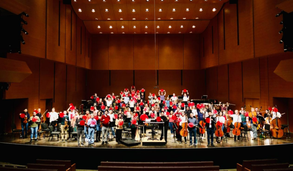 全体师生于费舍尔表演艺术中心前