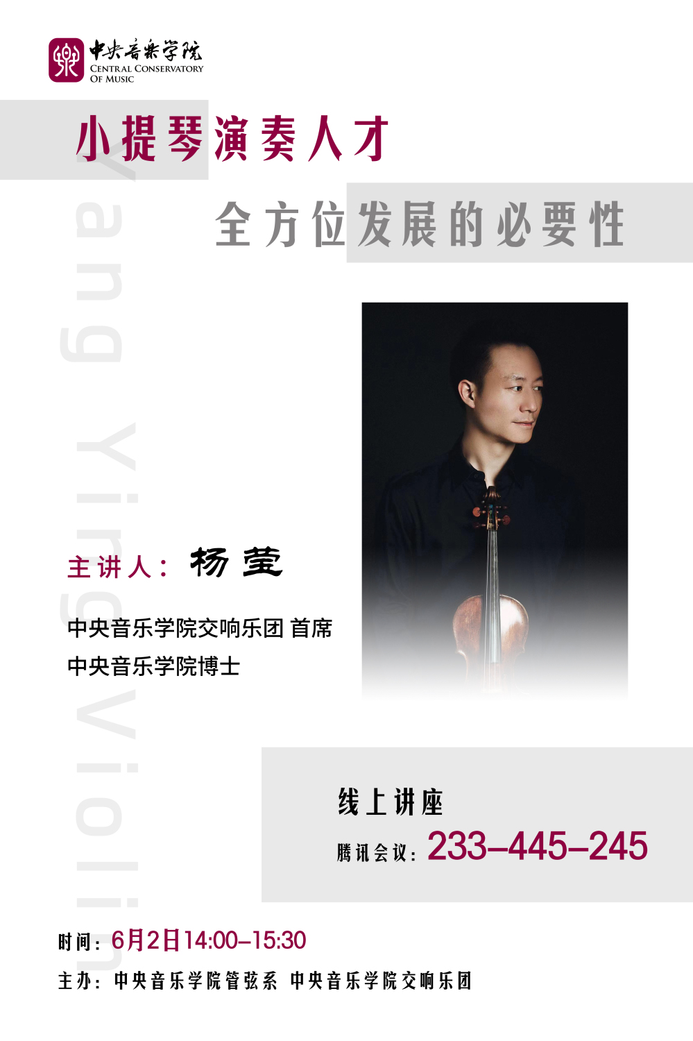 讲座预告 | 杨莹:小提琴演奏人才全方位发展的必要性