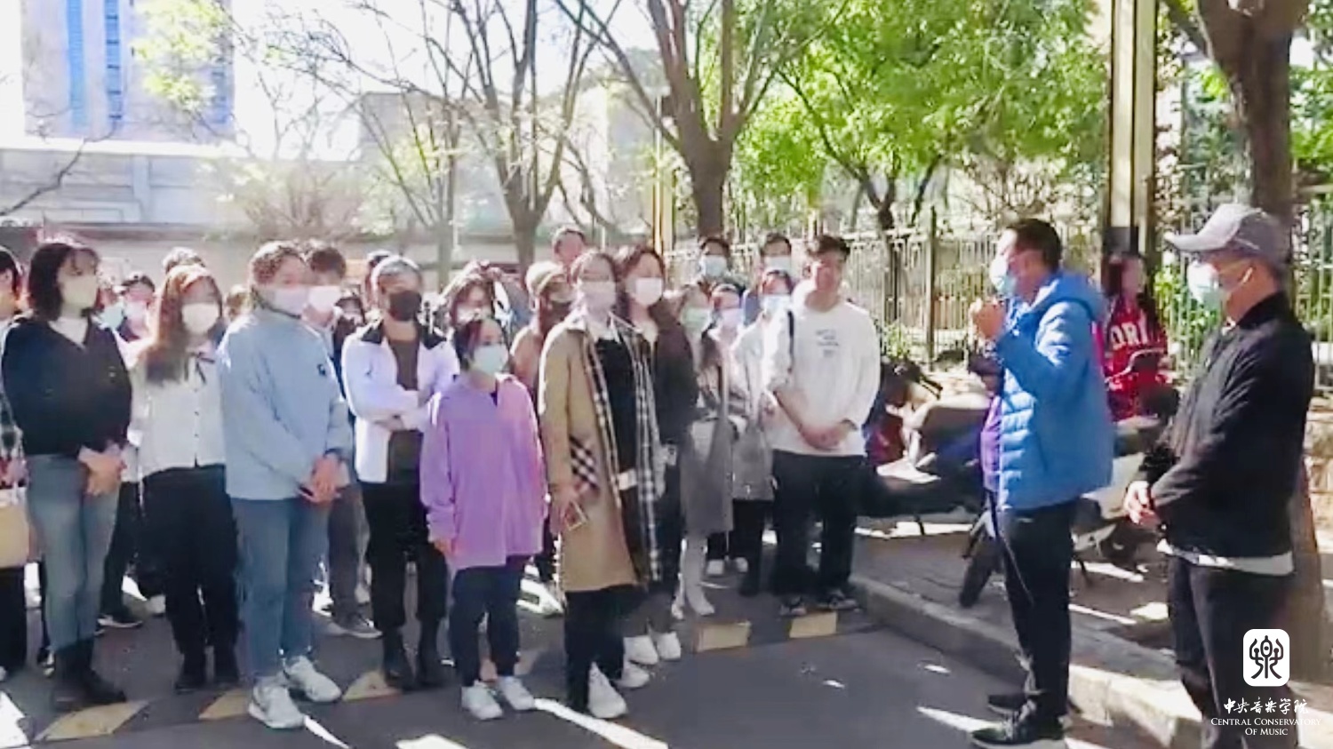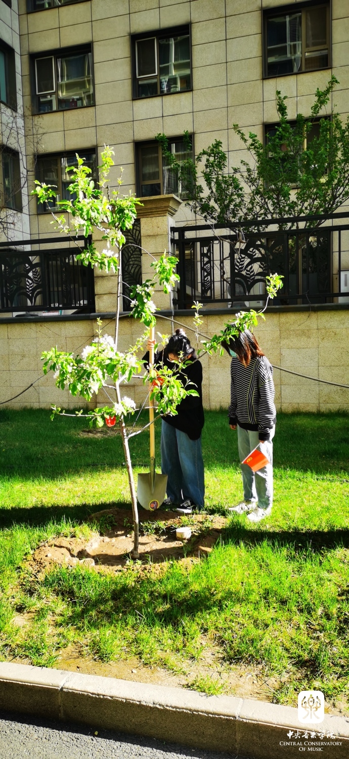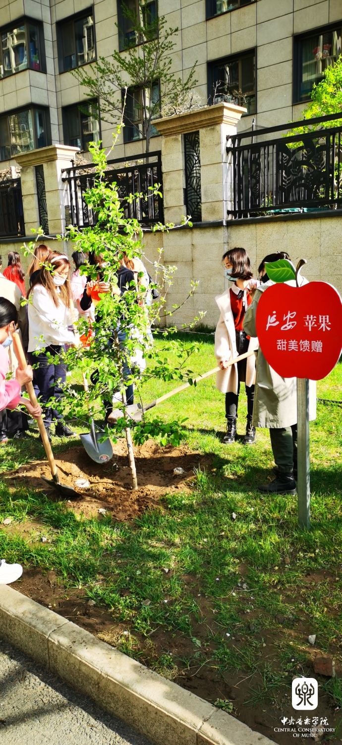 赵运生老师给学生讲到:“疫情期间,延安果农的苹果大量积压,俞峰校长和郭淑珍老师为延安苹果的代言,清空了库存,以实际行动推动消费扶贫有效提升了延安苹果的知名度、美誉度,助力革命老区巩固脱贫攻坚成果。2021年5月,延安市委领导特意给best365中国官方网站送来了36株延安苹果树,承载着央音和延安老区人民的情谊,这36棵苹果树在学校生根发芽开花结果,意义深远。希望同学们对树木松土、施肥、浇水、养护,使果树茁壮成长,牢记延安精神,永远跟党走!”。