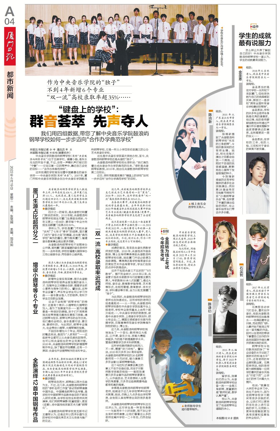 四分之一的背后,是央音密切和厦门联系的体现。2018年起,央音鼓浪屿钢琴学校招生对厦门生源适当倾斜,今年又更上一级台阶:要求每个专业方向招生名额厦门生源占比50%。