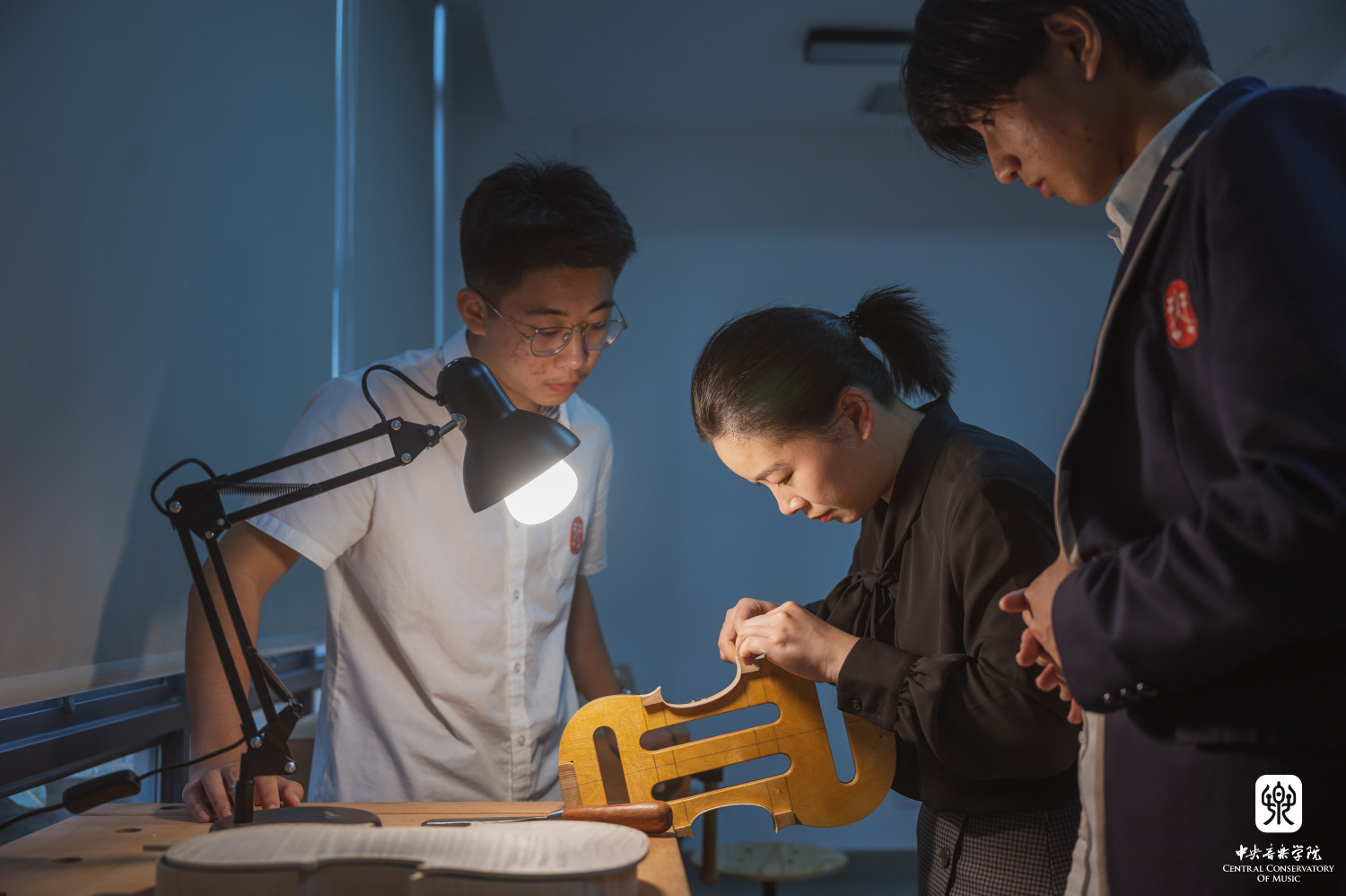 老师指导学生进行提琴制作