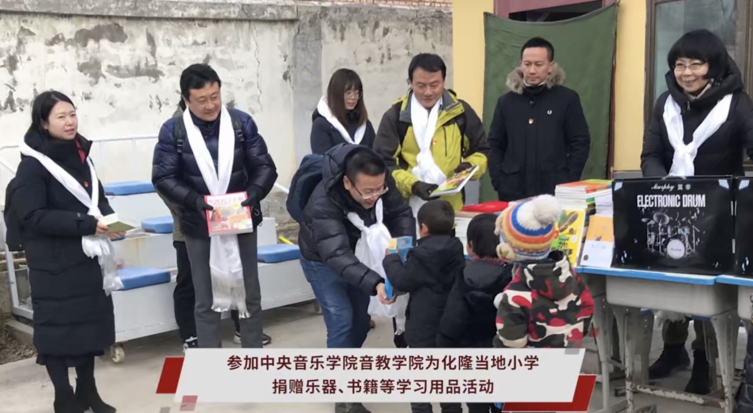 为化隆当地小学捐赠乐器、书籍等学习用品活动