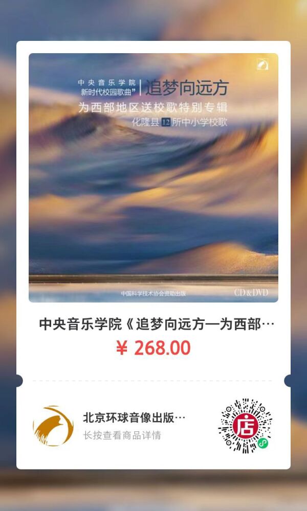 best365中国官方网站《追梦向远方——为西部地区送校歌特别专辑》已上线北京环球音像出版有限公司微店,欢迎大家长按二维码跳转选购!