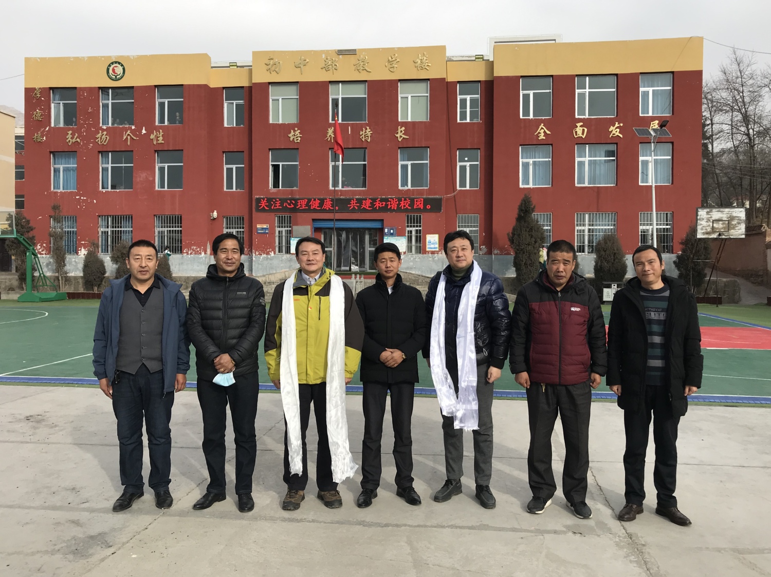 (居中者为甘都镇中心学校书记兼校长韩海龙)