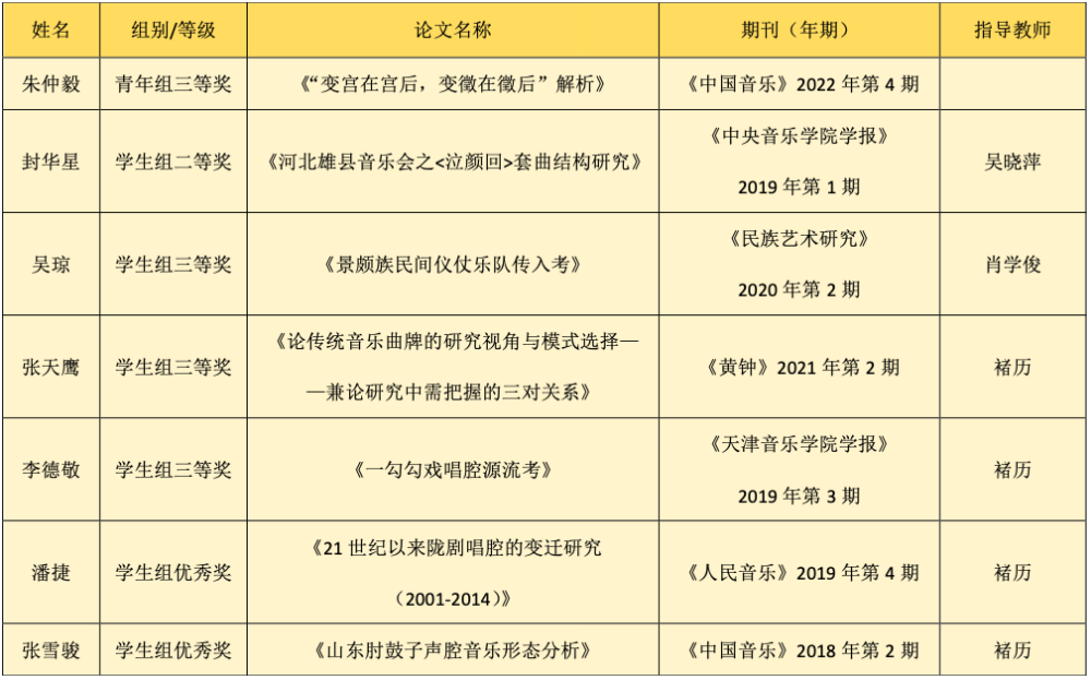 在中国传统音乐学会“第二届中青年论文评选”比赛中,best365音乐学系朱仲毅老师和封华星等六位学生获奖。获奖名单如下: