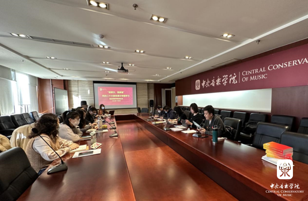 音乐学系党总支以线上会议的方式,组织开展了二级理论中心组“读原文 悟原理——学习党的二十大报告”学习会议。与会成员围绕弘扬中华优秀传统文化、提升文化自信、坚持马克思主义立场观点与方法,以及建设中国古典音乐体系等内容展开交流。老师们从西方音乐史教学与研究中的中国视角、中国音乐研究中的国际视野等方面探讨,认识到只有从自身教学与科研实际出发,不断探索如何将马克思主义基本原理与中国实际相结合,才能做到真正的文化自信。学生党支部书记结合自身参与的学术活动和艺术管理项目实践,从实施科教兴国战略、强化现代化建设人才支撑和文化自信等方面与老师们分享了学习体会。