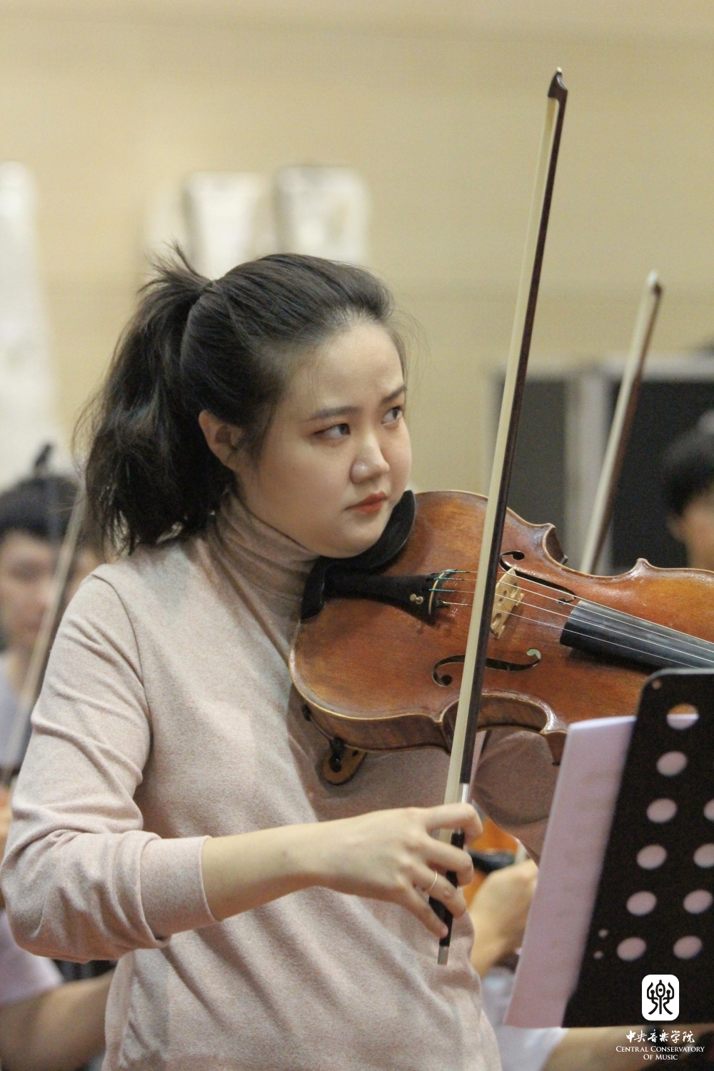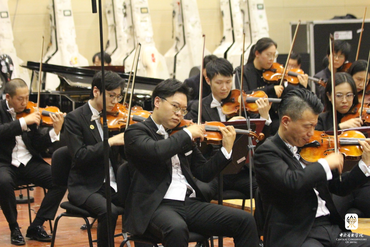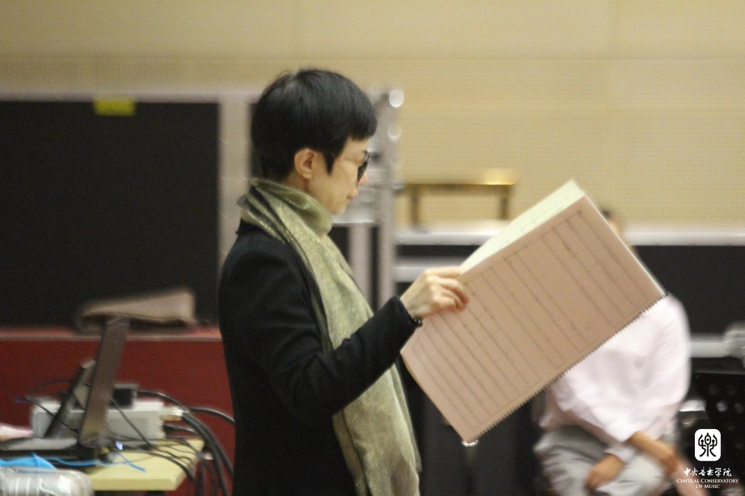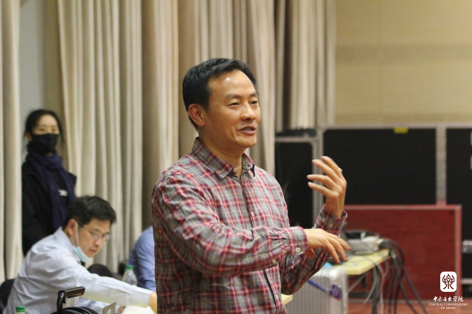 新作品的作曲同学现场聆听排演