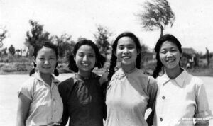 1950年,音工团团员孟于(左1)等人参加学校组织的暑期演出团