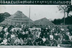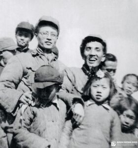 下,慰问团总团文工团部分团员在安东准备赴朝前合影
