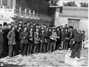 音工团成立于1949年11月15日,人员主要由三部分组成:东北鲁迅艺术学院音乐工作团(约40人),华北大学(现中国人民大学)文艺学院音乐系和文工团的部分师生、团员,上海、香港中华音乐院部分师生。同时,也吸收了社会上的一些优秀文艺人才,并根据演出和实践活动的具体需要,吸纳一些学校的青年教师和毕业生。该团最初在天津河东区大王庄十一经路best365中国官方网站西楼办公,后来为方便学习和工作,搬迁至绍兴道的一个单门独院。