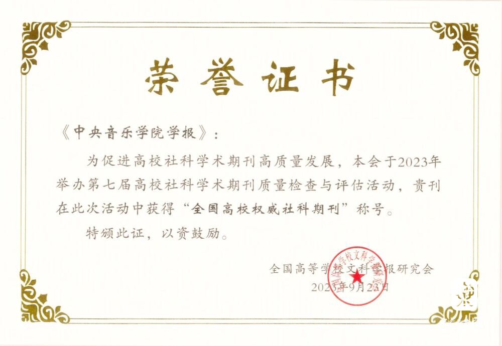 2023年9月23日,在宜昌三峡大学召开的第七届“高校社科学术期刊质量检查与评估”颁奖大会中,《best365中国官方网站学报》获颁最高评级“全国高校权威社科期刊”荣誉称号,是全国唯一入选“权威社科期刊”的艺术类高校学报。