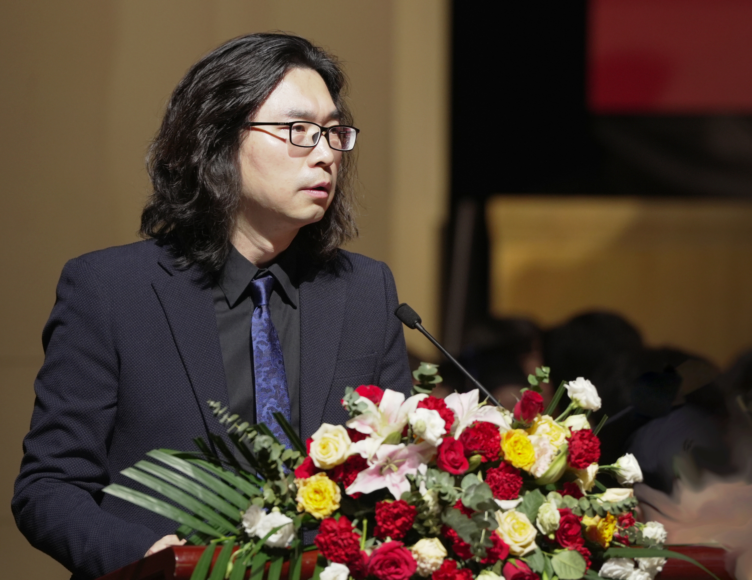 作曲系张帅教授是2022北京冬奥会主题曲《雪花》的创作者,该歌曲在开幕式上一经播出,引起了热烈的社会反响,收获无数赞誉。今天,作为教师代表,张帅教授从未来的规划展开发言,勉励同学们终身学习,在人生成长的道路上,做一个胸怀山川,志存高远的人;在艺术创作的道路上,做一个心怀人民,活在时代里的人;在追寻梦想的道路上,做一个坚守初心,泰然自若的人。