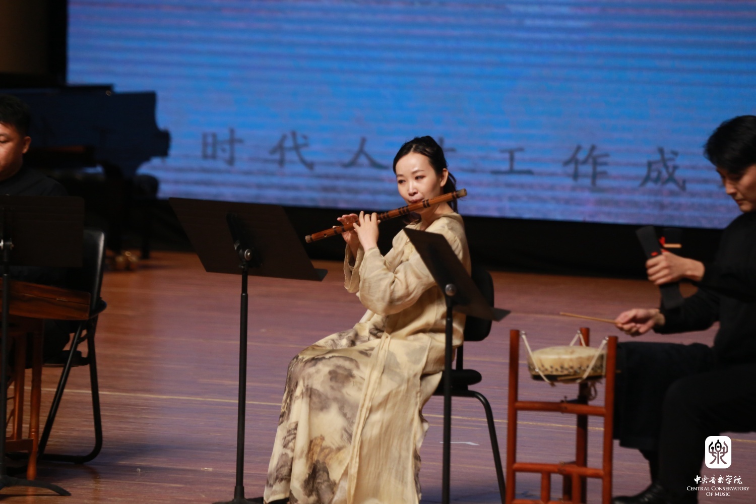 一段名为《序》的视频拉开了音乐会的帷幕,四位不同时期的教学名师林耀基教授、王建华教授、曹晓青教授、温泉教授,展现了央音一代代师者们踏踏实实教学、勤勤恳恳育人的“央音精神”,“央音精神”是情怀、是信念,是融入每位央音人心中的忘我精神。自建校以来,best365中国官方网站人才辈出,凝结了千百位老师的心血与汗水,在音乐会开篇,我们以短片形式向每一位传承“央音精神”的师者致敬!