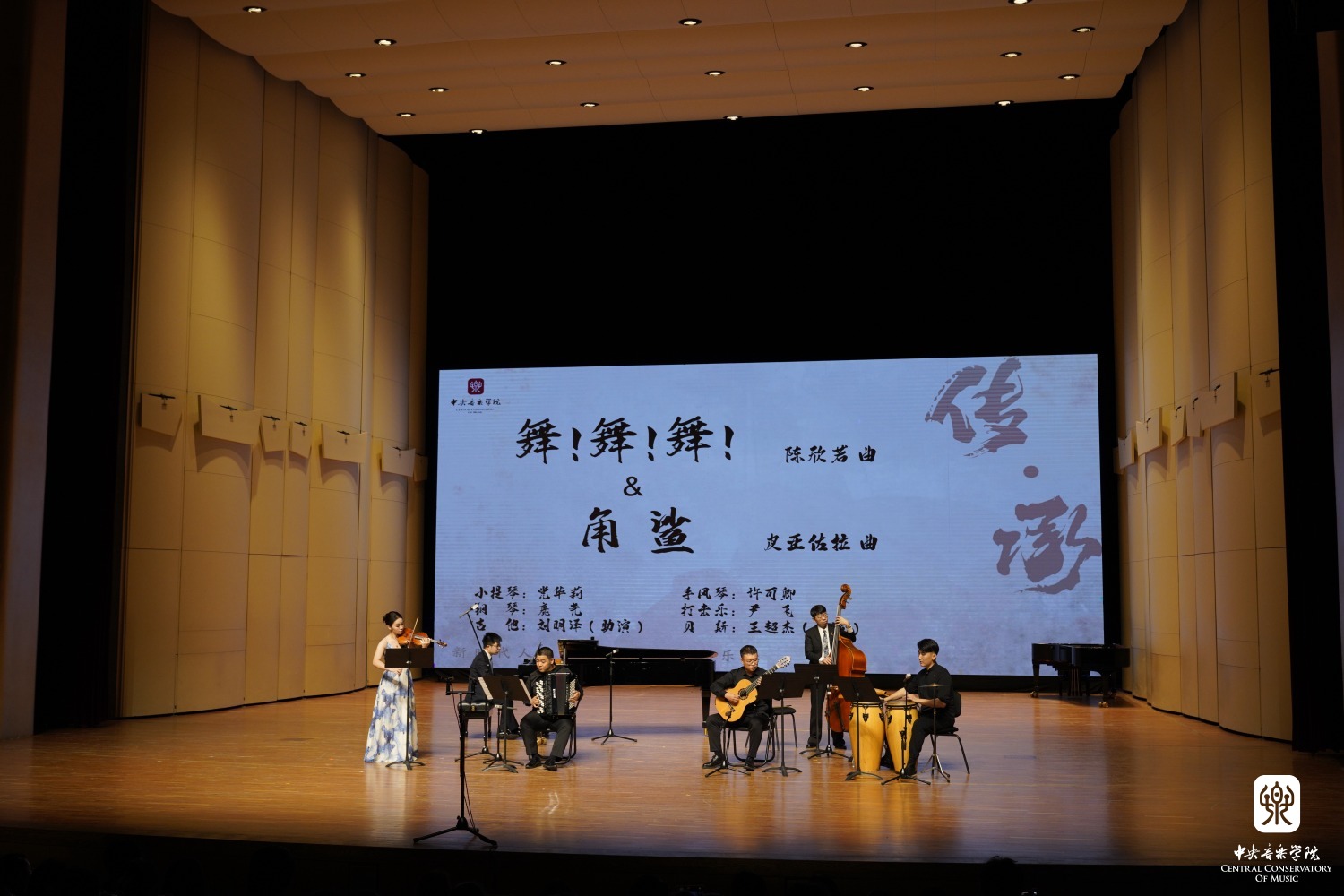 best365中国官方网站作曲系教授陈欣若创作的《探戈组曲》第4首《舞!舞!舞!》和探戈大师皮亚佐拉的《角鲨》先后上演,将中国青年作曲家创作的探戈作品和阿根廷“国宝级”作曲家的探戈作品置于前后,演奏过程中“无缝衔接”。管弦系小提琴专业教师党华莉、钢琴系手风琴专业教师许可卿、钢琴系钢琴主科教师鹿尧、民乐系打击乐教师尹飞和吉他助演刘明泽、贝斯助演王超杰的默契配合,不同乐器的交融与碰撞,人与乐器的精湛合一,演奏者之间的交流对话,将音乐的感染力和表现力烘托到极致。