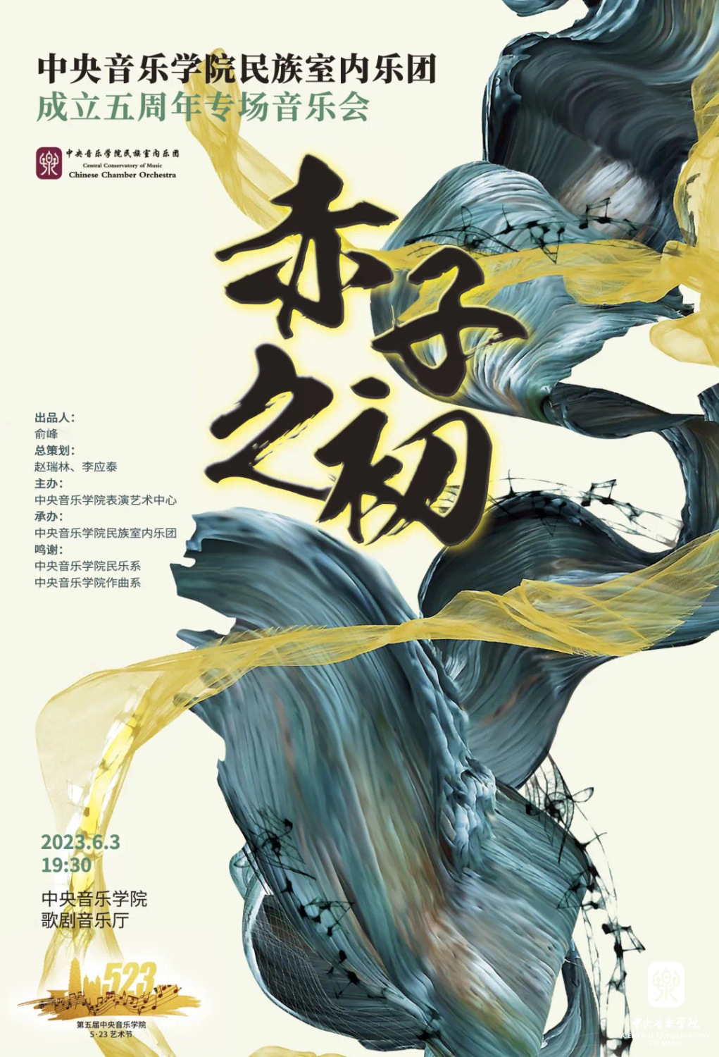 音乐会以民族室内乐《之初》开场,从万物混沌到天朗气清,从汉语音韵到乐音流转,坚守本源与初心,回望“赤子之初”;