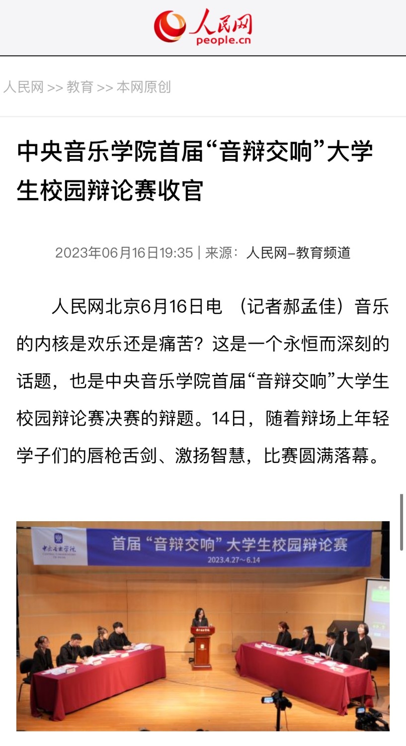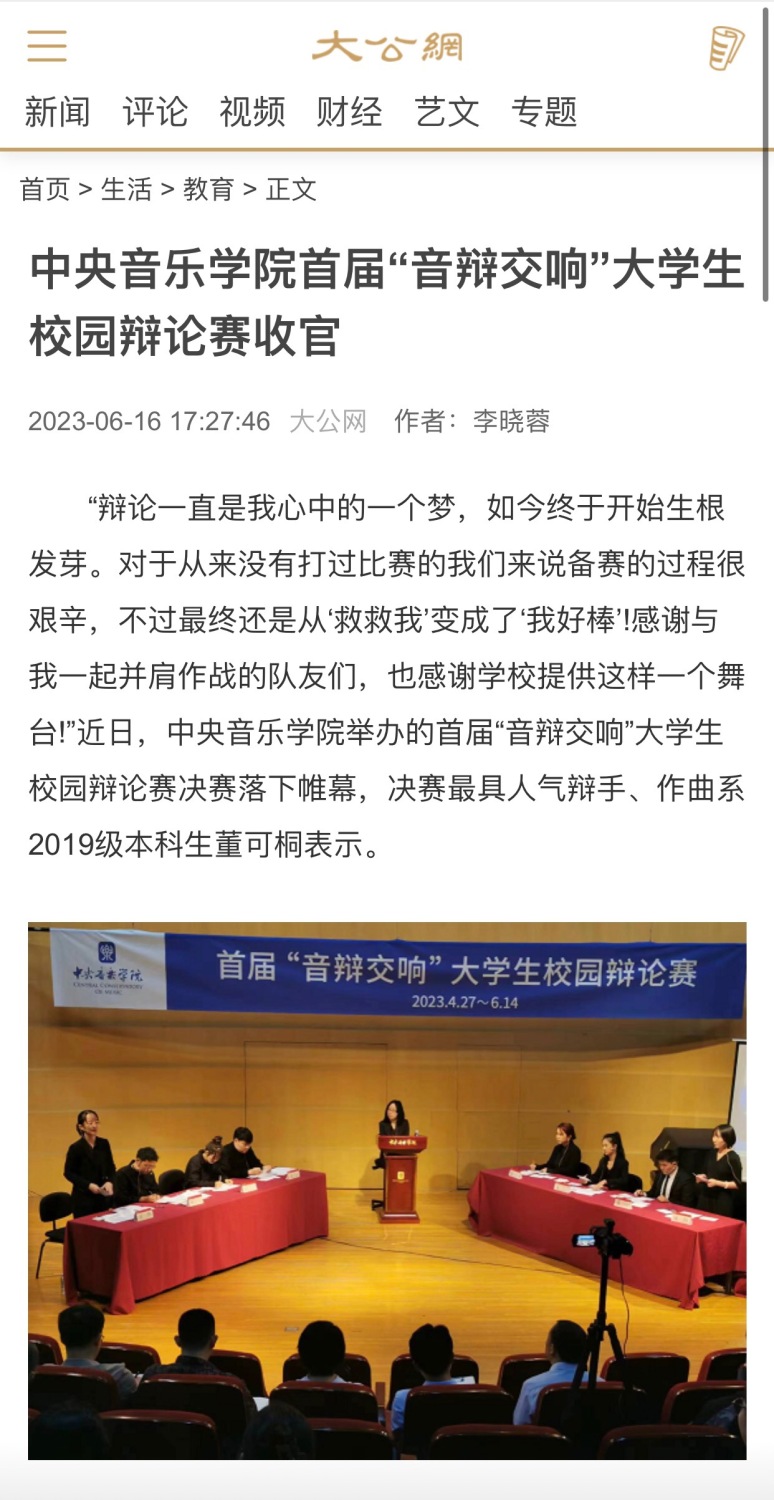 更重要的是,辩论赛始终注重育人功效,强化价值引领,“以辩化人”“以辩育人”。辩题涵盖的领域广泛,引导学生关心家事、国事、天下事,培养当代青年的社会责任感,切实将 “立德树人”的教育理念落细落实。在学生们的心性养成、人格塑造及家国情怀的涵养等方面,比赛发挥了积极作用。未来我们力争把“音辩交响”大学生校园辩论赛打造成可培育、可持续、具生长性的高水平校园文化品牌。