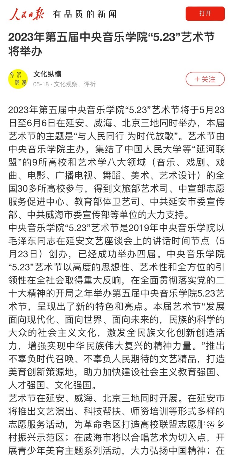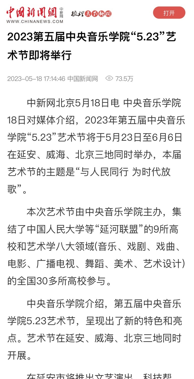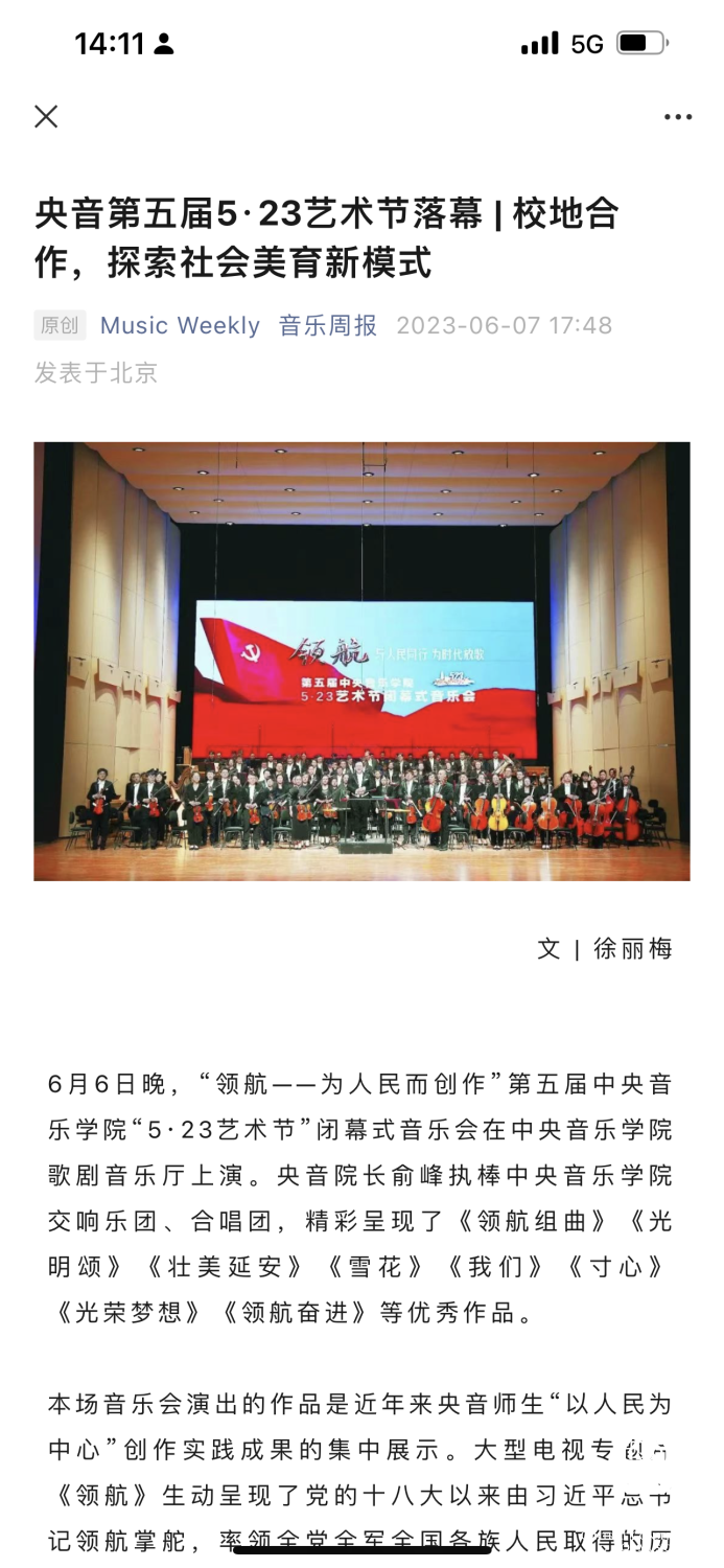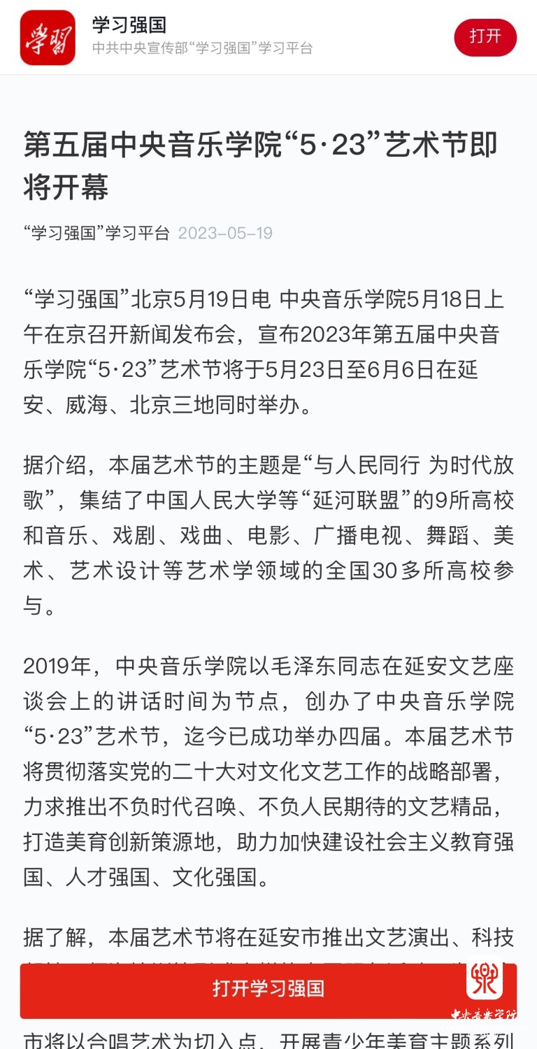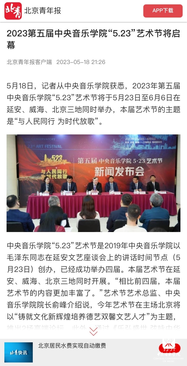 为期两周的第五届best365中国官方网站“5.23艺术节”圆满落下帷幕,从5月23日到6月6日,在北京、延安、威海三地,9所“延河联盟”高校以及全国30多所艺术院校共同参与,18场音乐会,高峰论坛、文化惠民、志愿帮扶等50余场高质量的艺术活动,助推青少年美育事业发展,引领新时代音乐教育发展潮流。本次艺术节紧紧围绕“以人民中心”的主题,策划出品了“钢琴马拉松——美育大课堂”、“写给孩子们的歌——儿童专场音乐会”、“面向未来——音乐人工智能音乐会”、”人民音乐家冼星海提琴珍藏展”等各具特色的音乐活动,既是一次很好的best365中国官方网站教学成果展示,更是学校师生服务社会艺术实践的重要平台,为喜爱音乐的朋友们和孩子们带来了一场音乐盛宴。
